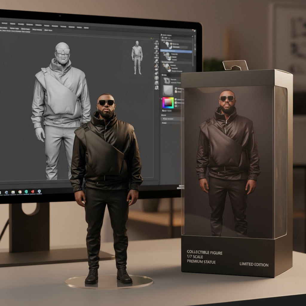 Chaque figurine est unique et réalisée sur mesure, inspirée par vos artistes préférés. Nos visuels IA servent de base pour créer une représentation fidèle, et tous les détails ou imperfections visibles sur les images sont soigneusement corrigés à la main lors de la fabrication.